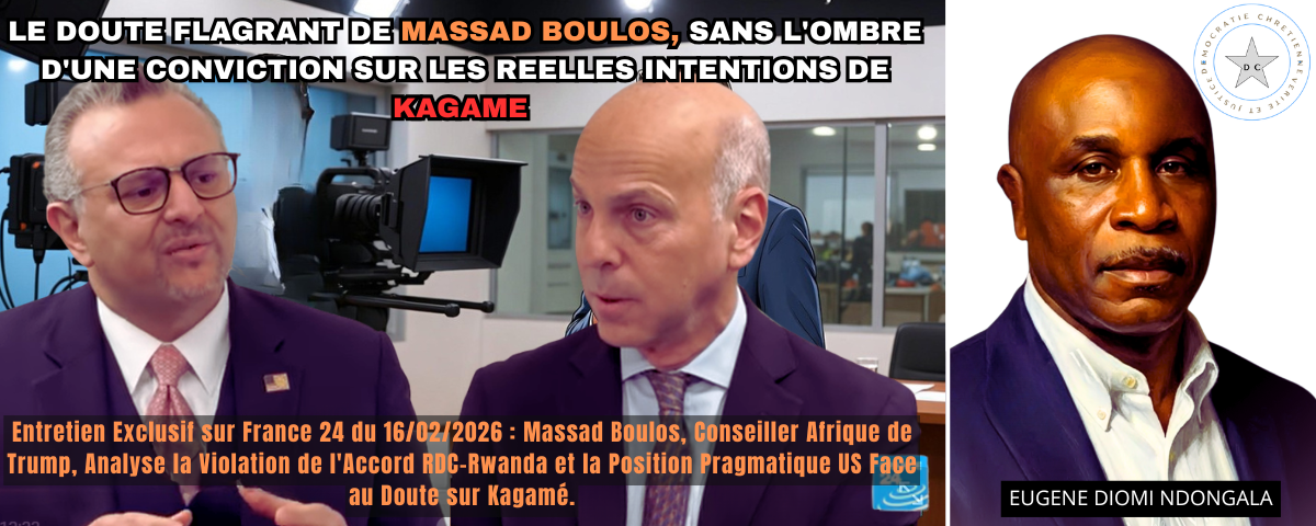 Entretien Exclusif sur France 24 du 16/02/2026 : Massad Boulos, Conseiller Afrique de Trump, Analyse la Violation de l’Accord RDC-Rwanda et la Position Pragmatique US Face au Doute sur Kagamé. Dans l’entretien diffusé le 16 février sur France 24, Massad Boulos, conseiller Afrique de Donald (…)